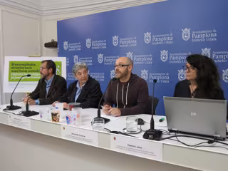 El concejal delegado de Ecología Urbana y Movilidad, Armando Cuenca, la directora del área, Camino Jaso, y la teniente de alcalde de Desarrollo Sostenible y Estrategias Urbanas del Ayuntamiento de Bayona, Martine Bisauta, han presentado este viernes en rueda de prensa esta iniciativa con la que se quiere "eliminar esa foto de toda la basura y suciedad a primera hora de la mañana".