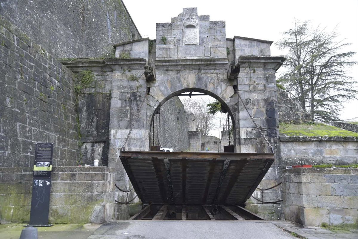 En este caso, cada uno de los dos contrapesos del puente levadizo, de hierro y plomo, pesan 645 kilos y alzan un tablero de 1,82 toneladas. Los elementos para realizar la maniobra datan del reinado de Felipe V y son obra de la fundición de Salvador Pinaqui (Molino de Caparroso).
