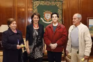 La alcaldesa de Pamplona, Yolanda Barcina, ha entregado las llaves de tres apartamentos tutelados a sus nuevos inquilinos, José Javier Nicolás Mangado, Manuel González De Assas y Mª Ángeles Cantero Aranaz.