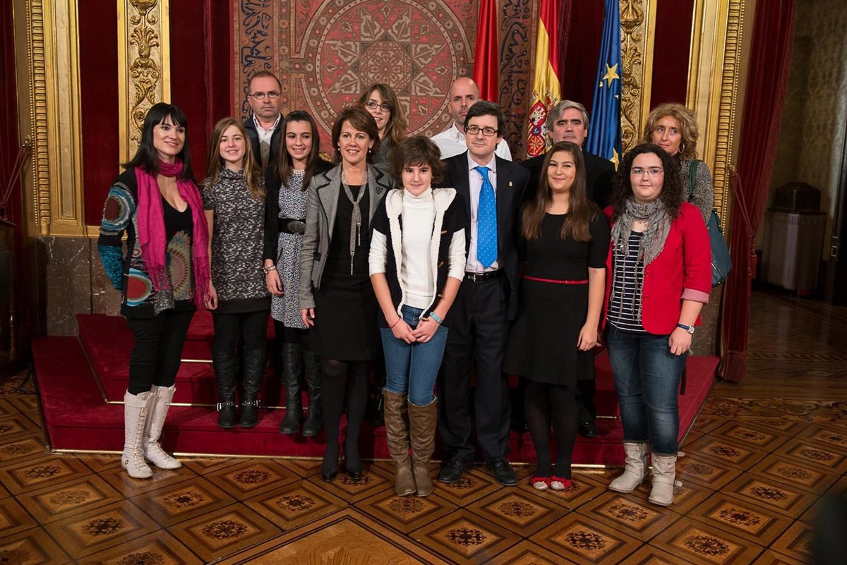 La presidenta de Navarra, Yolanda Barcina, ha recibido este lunes en el Salón del Trono del Palacio de Navarra a las alumnas del instituto Pedro de Atarrabia de Villava que han sido premiadas con una mención especial en el certamen internacional My Dream Interview (La entrevista que siempre soñé), organizado por la Asociación Mundial de Periódicos y Editores de Noticias (WAN-IFRA).