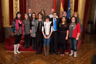 Las estudiantes presentaron al concurso una entrevista a Irene Villa, que perdió sus piernas a los 12 años en un atentado terrorista cometido por ETA y que ha estado presente en la recepción, junto al consejero de Educación, José Iribas, representantes de la Fundación Diario de Navarra, que ha colaborado en la realización de la entrevista, y del equipo galardonado.