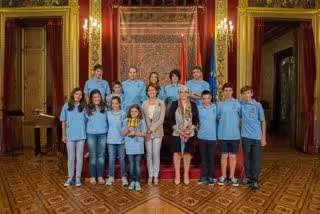 La presidenta del Gobierno de Navarra, Yolanda Barcina, y la vicepresidenta primera y consejera de Economía, Hacienda, Industria y Empleo, Lourdes Goicoechea, ofrecieron este martes por la tarde una recepción a los integrantes de Mechatronic Ants, equipo ganador del galardón de la First Lego League.