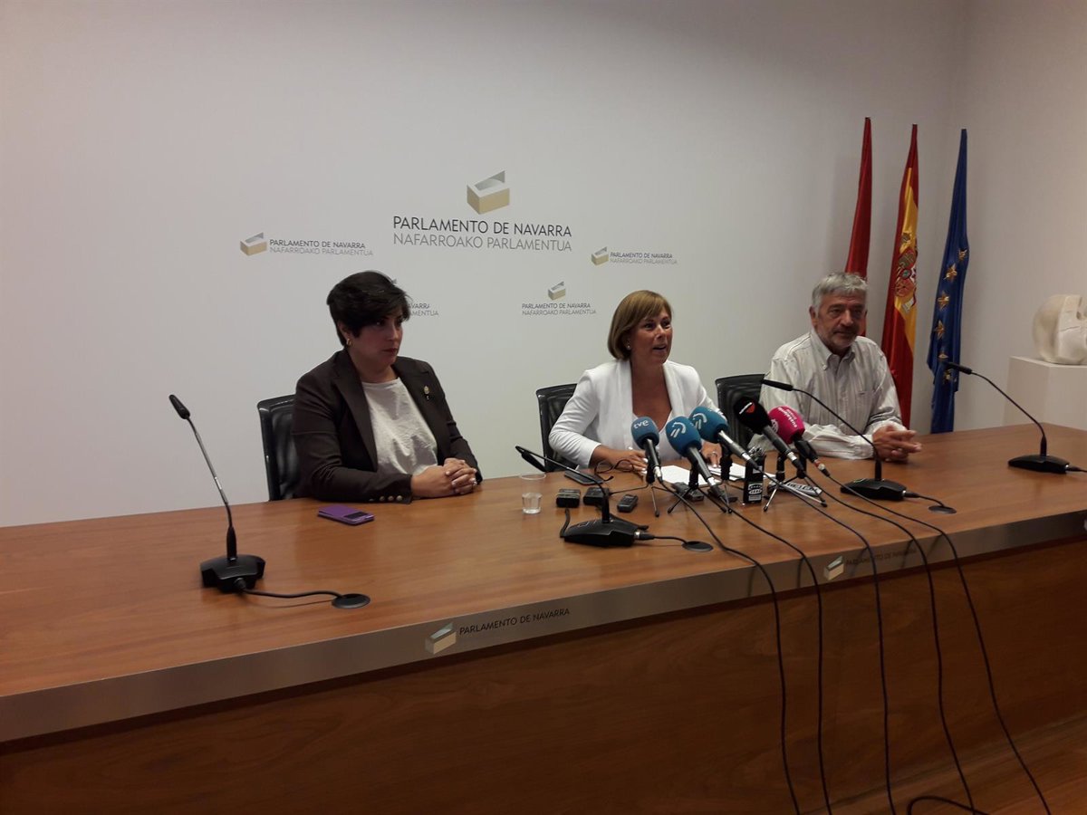 De izquierda a derecha, María Solana, Uxue Barkos y Koldo Martínez, parlamentarios de Geroa Bai, en rueda de prensa. - EUROPA PRESS