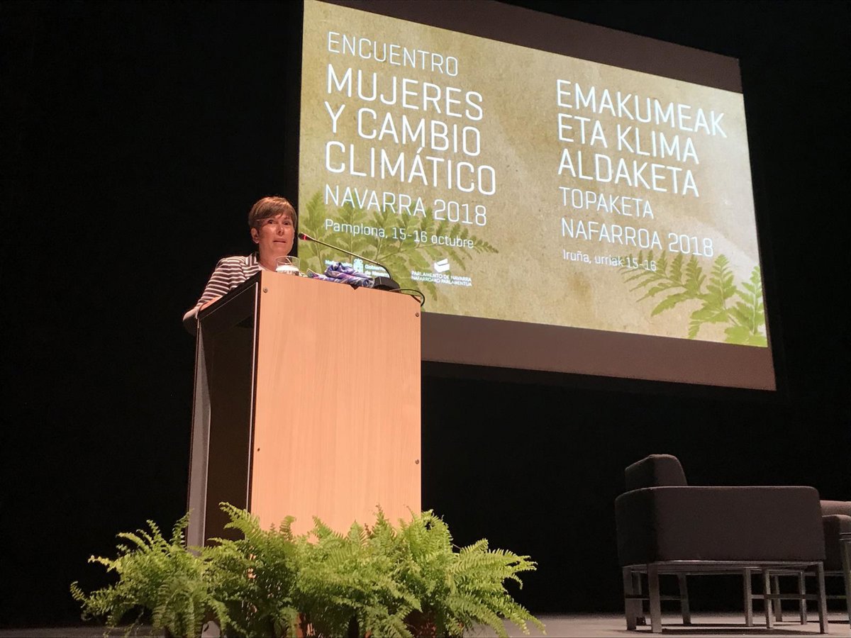 La presidenta ha realizado estas manifestaciones durante su intervención en el encuentro 'Mujeres y Cambio Climático. Navarra 2018', que se celebra en Pamplona, organizado por el Gobierno foral y el Parlamento. La cita tiene como objetivo dar a conocer las aportaciones hechas por mujeres en relación al cambio climático desde los campos de la política, el conocimiento y el activismo, y también invitar a una reflexión activa por parte de la ciudadanía.
