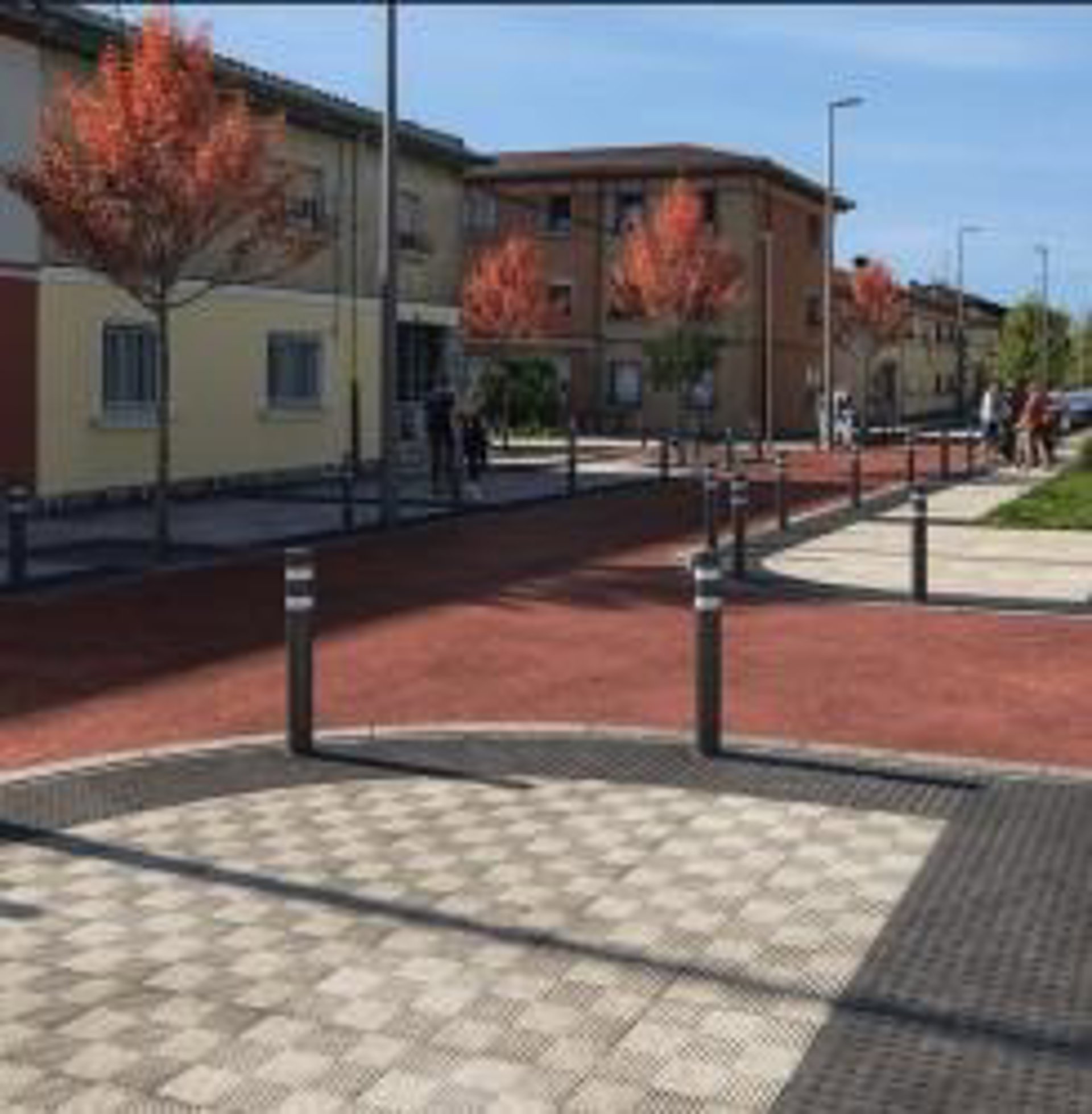 En las zonas de tráfico rodado, el pavimento será aglomerado asfáltico impreso de color negro en las calles Artajona, Cáseda, Cintruénigo, Etxalar, Etxarri Aranatz y travesía de Espronceda. En la rotonda y en la calle San Cristóbal será asfalto negro liso. En cuanto a los pasos de cebra a nivel y en los cruces en plataforma única de las calles interiores la calzada será de aglomerado asfáltico impreso de color. La preferencia peatonal se acentúa con la plantación de árboles en las bandas de aparcamiento, una medida ya implantada por el Servicio de Jardines en otras calles del barrio como Paternáin, Zuasti o Castillo de Tiebas.