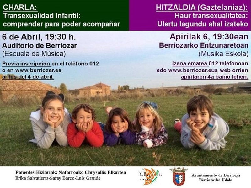 Berriozar acogerá el próximo miércoles 6 de abril la charla 'Transexualidad Infantil: comprender para poder acompañar' impartida por la Asociación Chrysallis Navarra.
