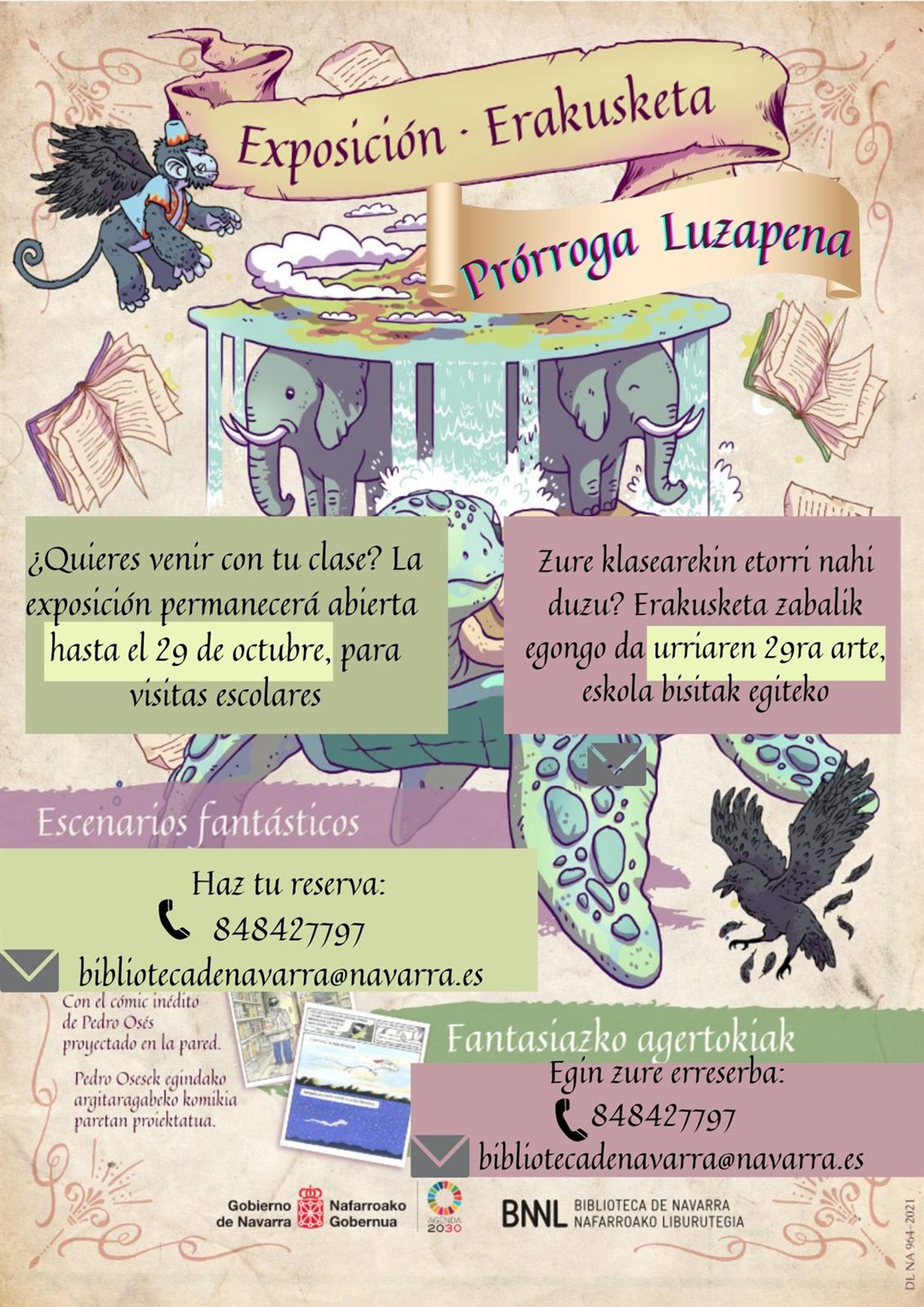 Además, se ofrecerán visitas guiadas a los centros escolares, tanto en castellano como en euskera. Para hacer la reserva hay que dirigirse a la biblioteca por correo electrónico (bibliotecadenavarra@navarra.es).