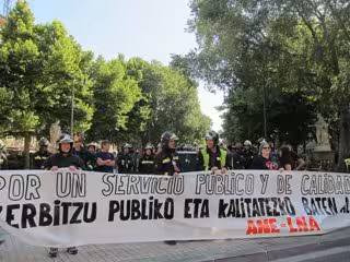 En representación de los asistentes, Lander Aurrekoetxea ha leído un comunicado en el que la comisión de personal critica la "dejadez y falta de compromiso que está demostrando a día de hoy este Gobierno respecto al servicio público de bomberos" y el "grave retroceso" que están viviendo "en el ámbito de las emergencias".