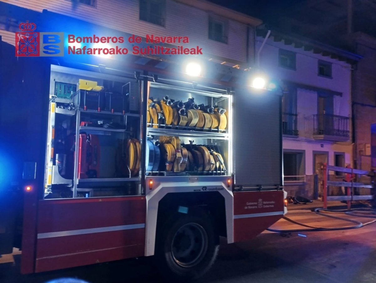 El aviso del fuego tuvo lugar a las 22.23 y al lugar se desplazaron bomberos de Peralta, de Tafalla, una ambulancia SVB en prevención y agentes de la Policía Foral.