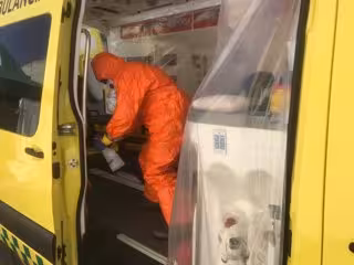 Un bombero realiza la descontaminación del interior de una ambulancia en Estella - GOBIERNO DE NAVARRA