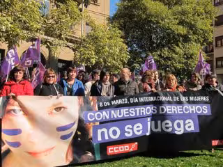 Así lo ha destacado en declaraciones a los periodistas la secretaria de Igualdad y Mujer de CCOO de Navarra, Pilar Arriaga, después de la concentración que delegados del sindicato han realizado en Pamplona con motivo de la celebración este sábado, 8 de marzo, del Día de la Mujer Trabajadora. La movilización se ha desarrollado con el lema 'Con nuestros derechos no se juega' y en ella ha estado la madre de Nagore Laffage, Asun Casasola.