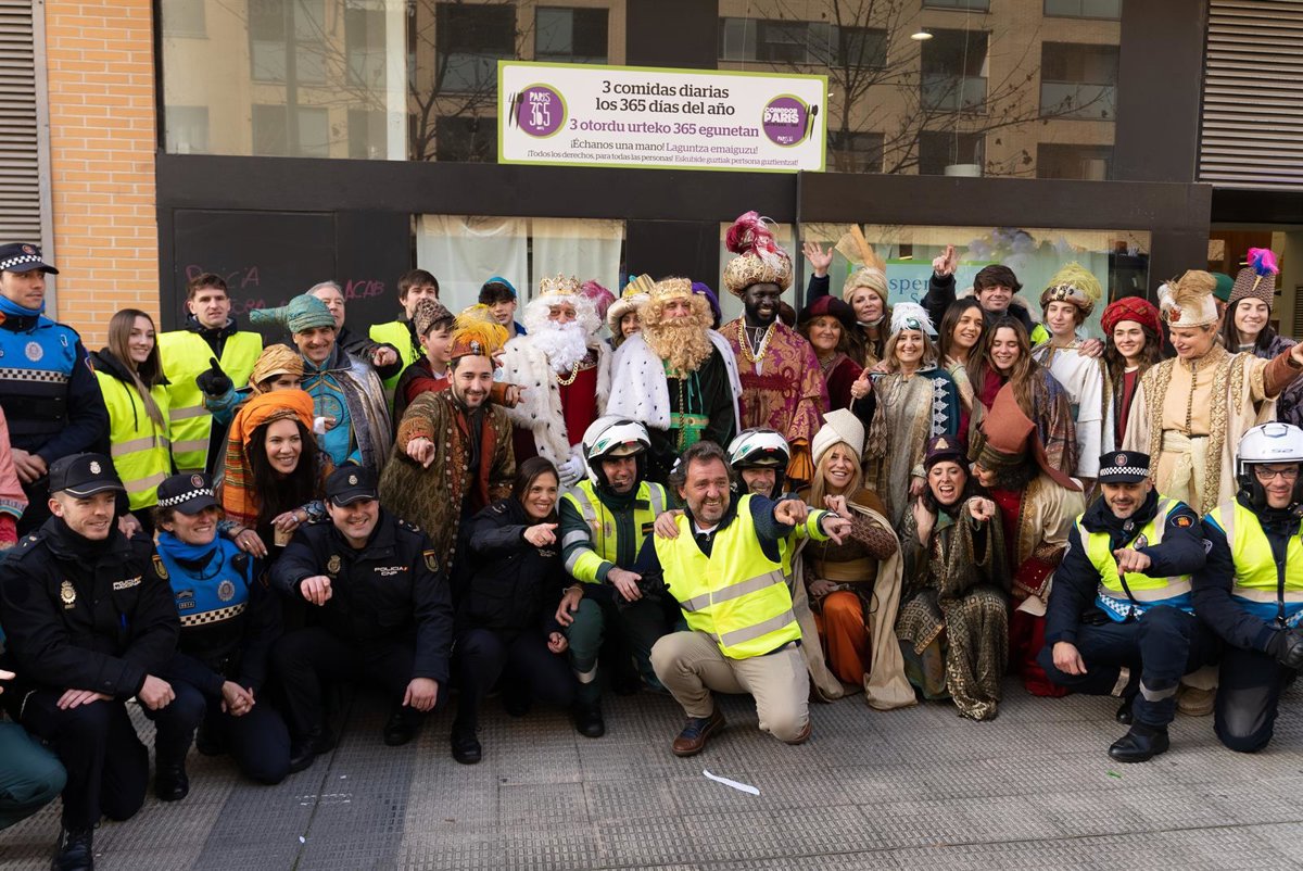 La cabalgata solidaria, que ha tenido lugar de 09.30 a 14 horas, se ha realizado con el apoyo de la Policía Municipal de Pamplona, Guardia Civil, Policía Nacional, Bomberos de Navarra, Policía Foral y el cuerpo militar, que han trasladado en sus vehículos a los Reyes Magos, a la comitiva real y a los organizadores para iniciar el reparto por los cinco diferentes puntos asignados en la capital navarra y han abierto paso durante todo el recorrido.