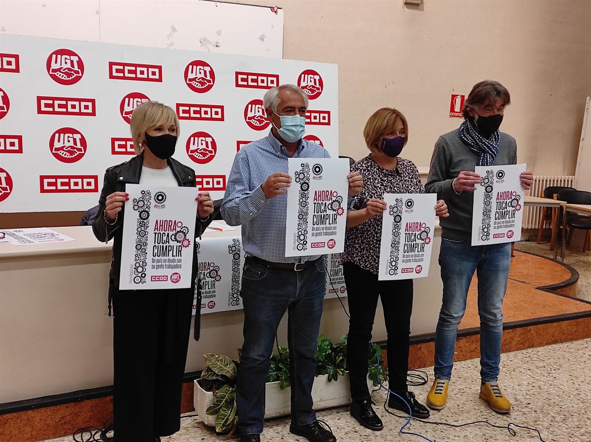 Los sindicatos CCOO y UGT se movilizarán conjuntamente este Primero de Mayo en Pamplona con el lema 'Ahora toca cumplir', con el que piden al Gobierno de España que cumpla sus "compromisos" y derogue la reforma laboral, suba el Salario Mínimo Interprofesional y derogue también la reforma de las pensiones.