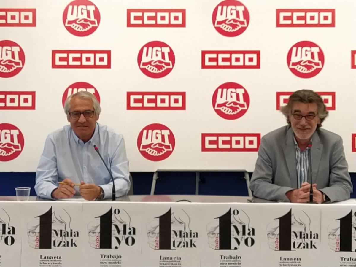 Jesús Santos (i) y Chechu Rodríguez, secretarios generales de UGT y CCOO de Navarra - CCOO