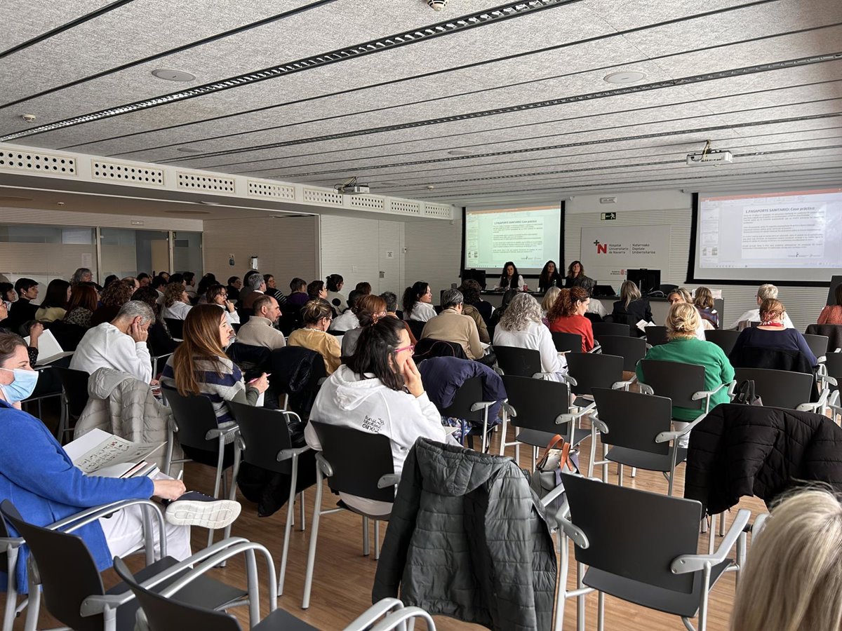 Las profesionales de Isterria Laura San Martín, Alicia Azcona y María Aragón trasladaron a las más de 100 personas participantes de los diferentes perfiles profesionales del Hospital Universitario de Navarra "cómo prestar mejores apoyos a las personas con discapacidad intelectual desde la comunicación, la regulación conductual y la salud física". El objetivo es "mejorar el acceso y la atención sanitaria, garantizando así el derecho a la salud de las personas con discapacidad intelectual, desarrollando acciones que mejoren la inclusión y la calidad de vida de este colectivo y sus familas".