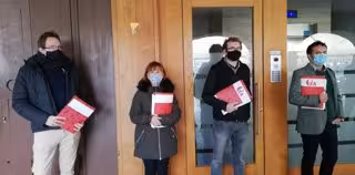 Los coordinadores locales del partido en Pamplona, Esther Korrés; Bilbao, Bruno Zubizarreta; San Sebastián, Javier Estebanez; y Vitoria, Iñaki Sanchez; han entregado este sábado estas firmas en la sede de EA en Pamplona.