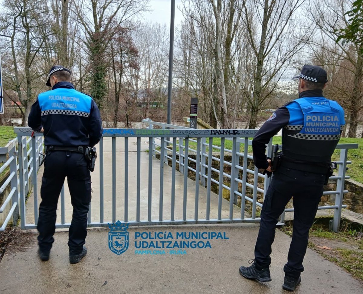 Cerrado el puente peatonal sobre el río Arga. - POLICÍA MUNICIPAL DE PAMPLONA