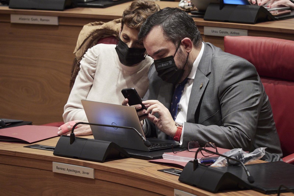 Archivo - La presidenta de Navarra, María Chivite, y el vicepresidente del Gobierno de Navarra, Javier Remírez, en un pleno del Parlamento de Navarra. - Eduardo Sanz - Europa Press - Archivo