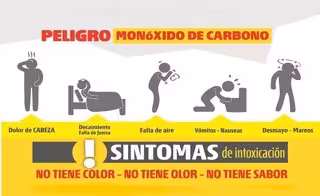 Los síntomas de intoxicación son dolor de cabeza, decaimiento o falta de fuerza, falta de aire, vómitos y nauseas y desmayos y/o mareos.