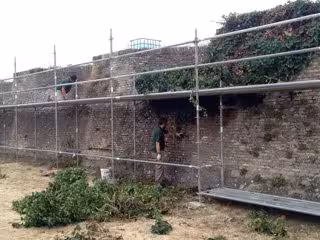 Estos días se está limpiando y desbrozando la estructura llamada 'Caballero dominante' del Baluarte Real, una intervención que comenzó a finales de agosto y que se simultanea con la limpieza de pintadas del interior de la Ciudadela. Son trabajos de conservación y mantenimiento que se recogen en el contrato que el Ayuntamiento de Pamplona adjudicó, a principio de agosto, a la empresa Zubillaga S.A.