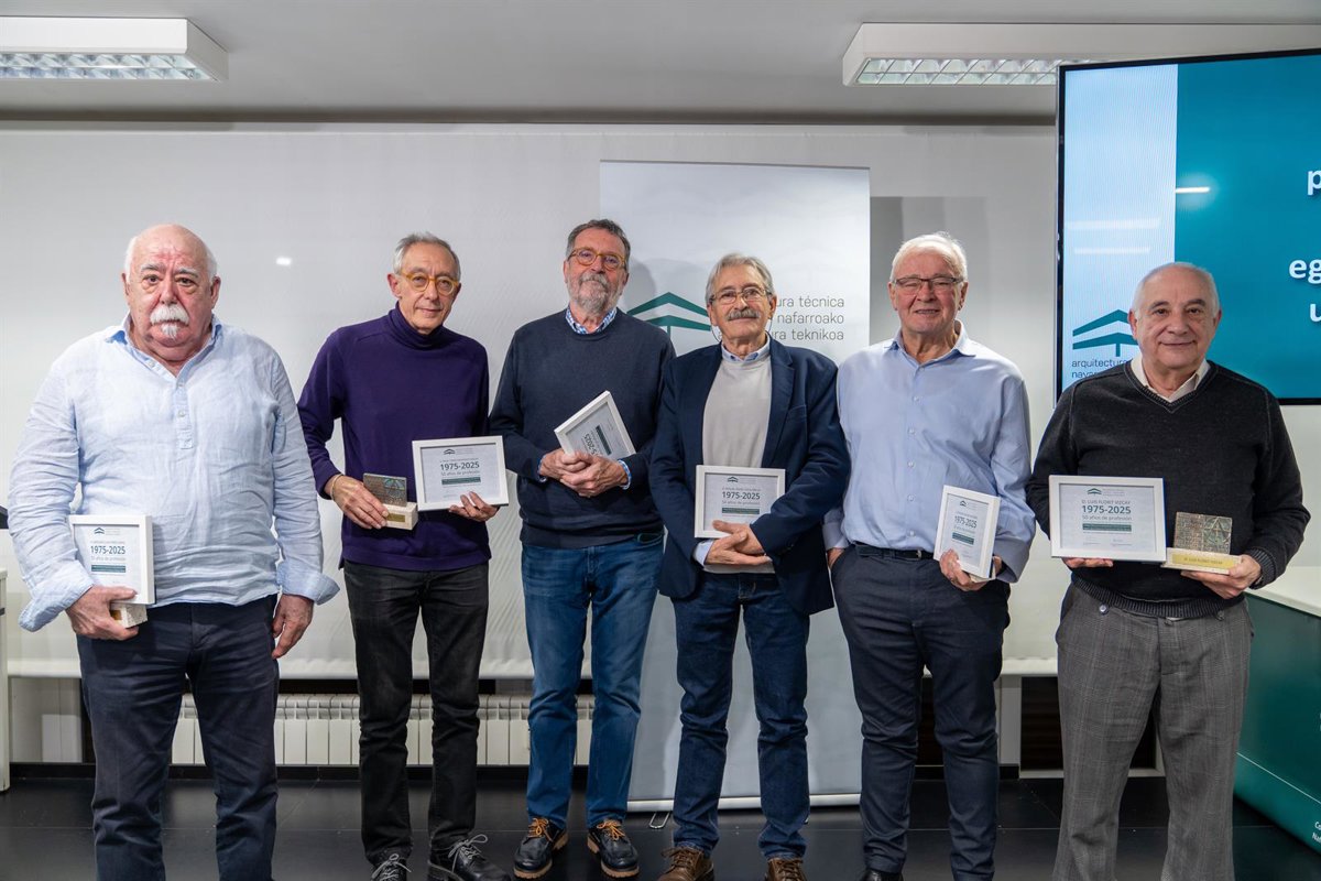 El Colegio Oficial de la Arquitectura Técnica de Navarra (COAT) celebró recientemente su tradicional encuentro de fin de año. Una cita en la que rindió homenaje a siete colegiados por haber alcanzado el medio siglo de trayectoria. De esta forma, Enrique Altarriba, Epi Azanza, Luis Florit, Ángel Hernández, Goyo Pérez, Miguel Sola y Mikel Alemán fueron los protagonistas de este acto de reconocimiento.