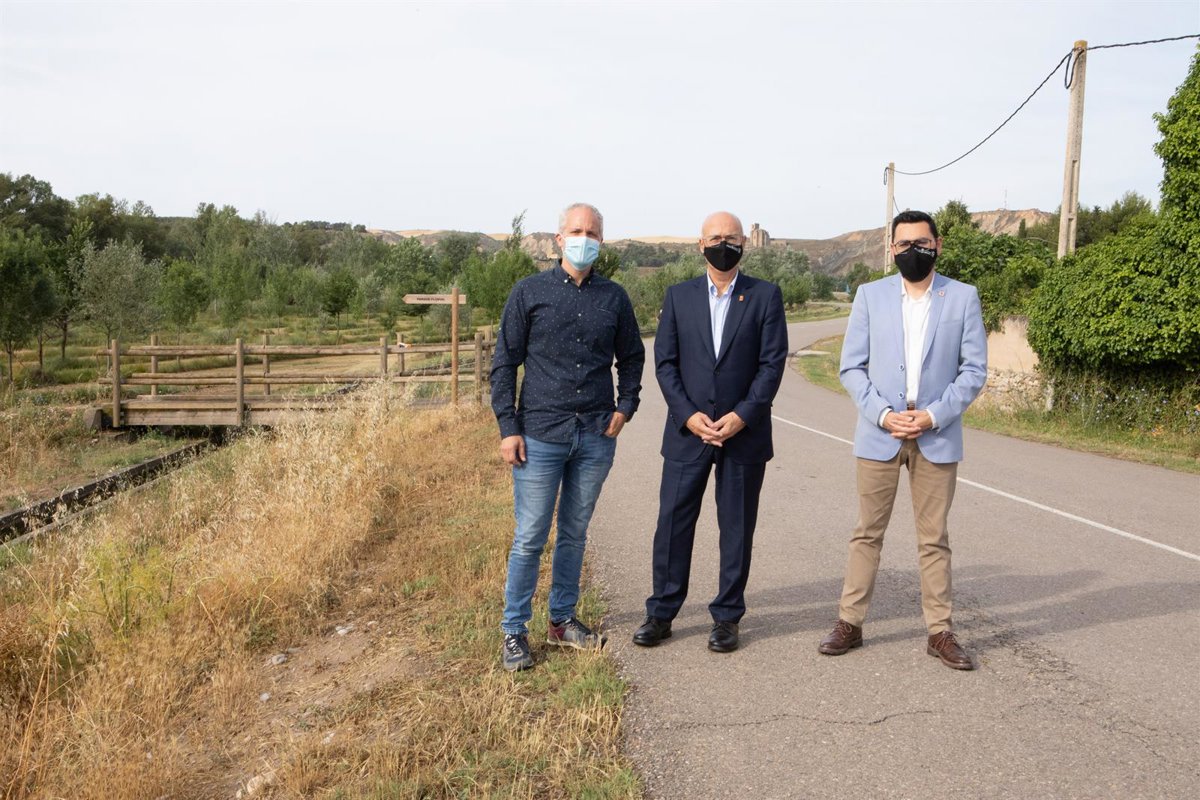 Archivo - El alcalde de Caparroso, Carlos Alcuaz, el consejero Ciriza, y el director general Jesús María Rodríguez, en la zona donde se realizará la actuación. - GOBIERNO DE NAVARRA - Archivo