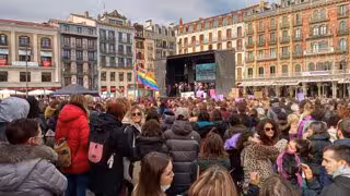 Con motivo de la celebración, este 8 de marzo, del Día Internacional de la Mujer, el colectivo feminista ha convocado en la Plaza del Castillo de Pamplona una concentración en la que han participado cientos de personas, muchas de ellas portando prendas de color morado, y en la que se ha coreado la consigna 'Gora borroka feminista' ('Viva la lucha feminista').