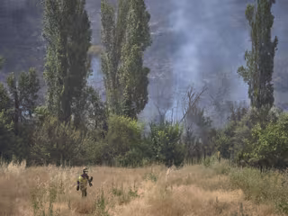 Un bombero participa en la extinción de un incendio en Ujué - Eduardo Sanz - Europa Press