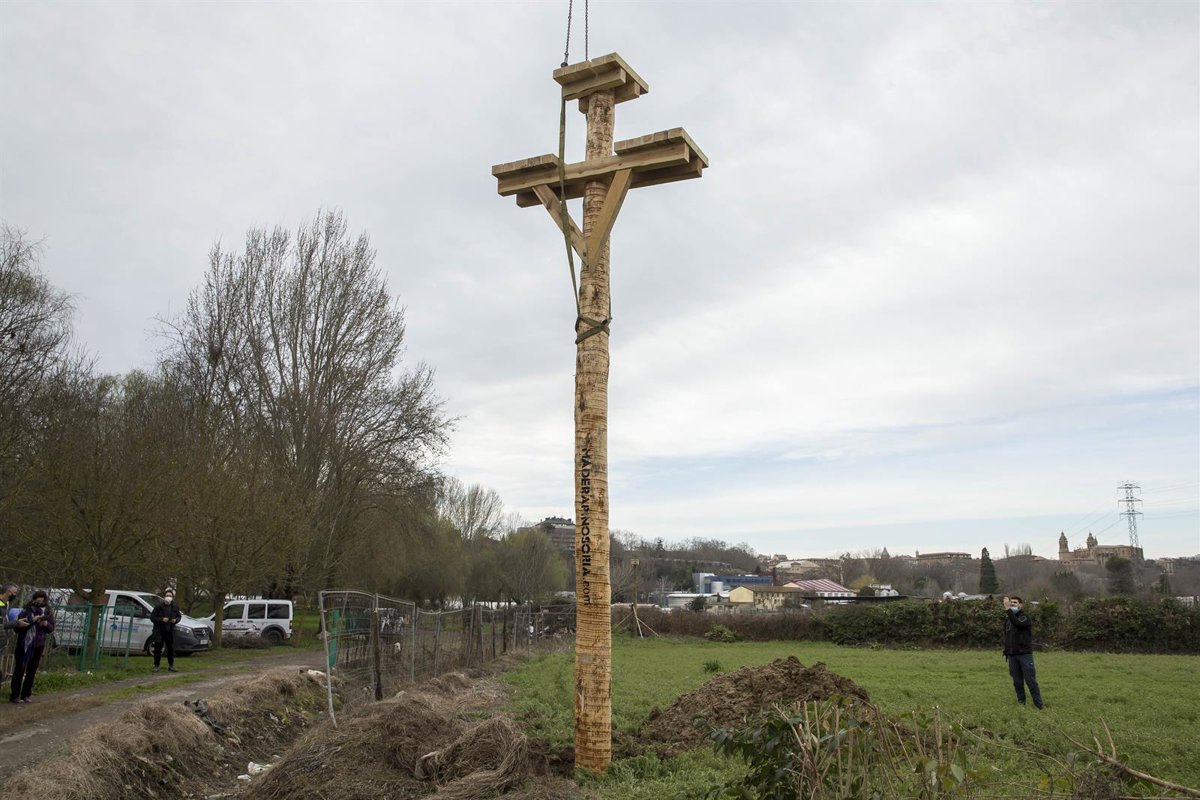 La autorización para esa retirada aconsejaba la colocación de un poste artificial con una plataforma para que pudiera anidar la pareja de cigüeñas que lo utilizaba. La retirada del nido se produjo el 21 de enero y menos de un mes de después, este jueves 18 de febrero, se ha instalado ya el poste artificial, ha explicado el Consistorio.