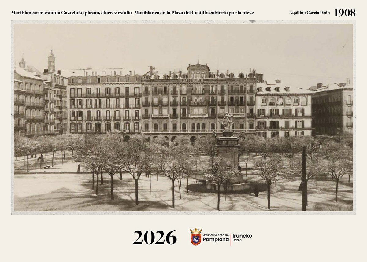 El calendario de 2026 se ha confeccionado con fotografías del patrimonio del Archivo Municipal de Pamplona, que recorren distintos momentos de la vida de la ciudad durante el pasado siglo.
