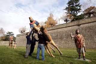 Un equipo de cuatro operarios comenzarán a bajar este jueves las figuras de gran tamaño del Belén de la Taconera para que pueda inaugurarse este viernes, con el resto de belenes municipales. En los últimos dos días han estado trabajando en la preparación del espacio y en la instalación del portal –de techo de resina y paredes laterales de madera- que acoge al Nacimiento y que aún está a falta de los últimos retoques.