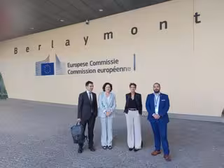 I-D, el director general de Comunicación del Gobierno de Navarra, Miguel Moreno, la consejera de Derechos Sociales, Carmen Maeztu, la presidenta María Chivite, y el director general de Acción Exterior, Sergio Pérez, en Bruselas. - GOBIERNO DE NAVARRA