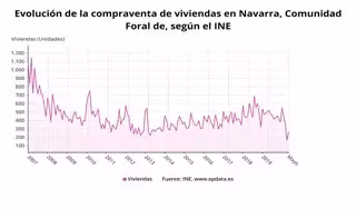 El 79,5% son usadas y en términos interanuales se registra un descenso del 51,6%. La compraventa de viviendas nuevas decrece un 39,3% respecto al mismo mes de 2019, según datos del Instituto de Estadística de Navarra.