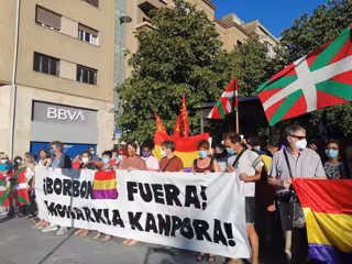 'Monarkia kanpora (monarquía fuera)', 'Los Borbones a los tiburones' o 'Felipe acelera que viene la tercera' han sido algunas de las consignas que han coreado los asistentes a la concentración, alrededor de un millar, según los propios convocantes.