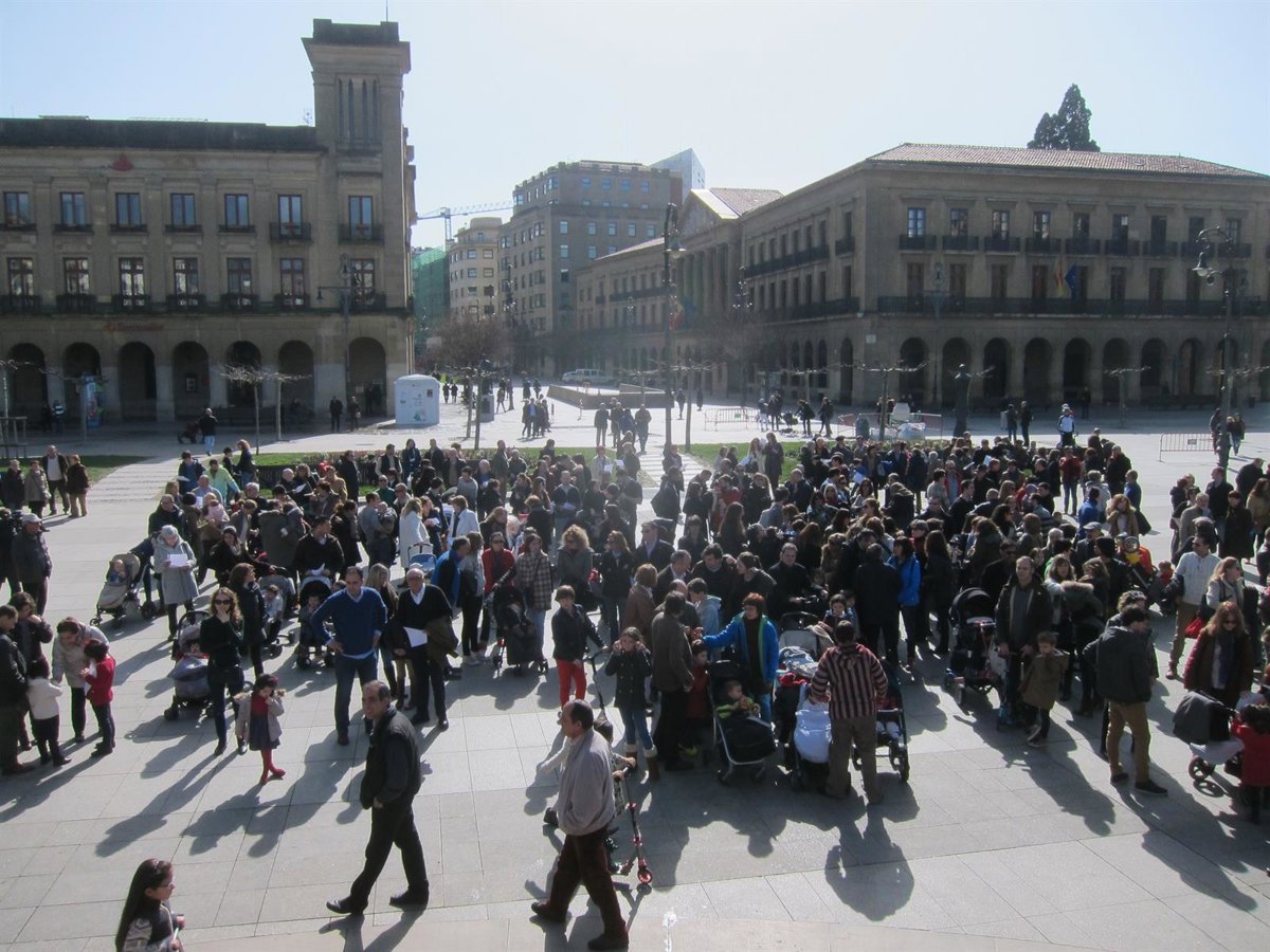 Cientos de personas, convocados por padres y trabajadoras de las escuelas infantiles de Pamplona, se han concentrado este domingo en la Plaza del Castillo en contra del cambio en el modelo lingüístico de varias escuelas infantiles de la capital navarra.