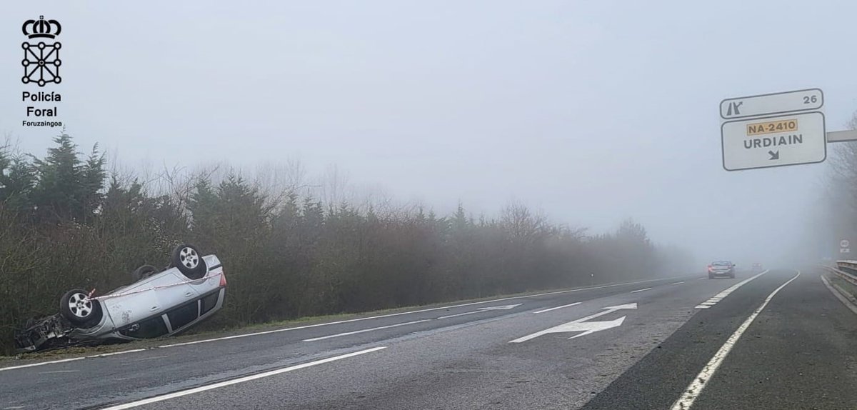 El accidente se ha producido a las 8.15 horas de este domingo. El conductor, que ha sido trasladado al hospital, ha sido imputado por dar una tasa de alcoholemia penal (0,69) y positivo indiciario en speed, según ha informado la Policía Foral.
