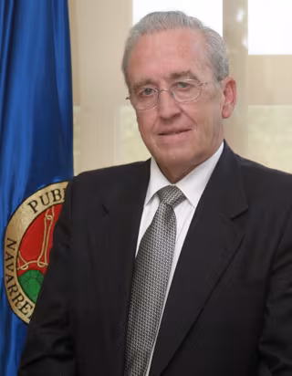 La distinción, otorgada a propuesta del rector Julio Lafuente, muestra el reconocimiento de la UPNA al que fuera presidente de la Comisión Gestora y primer rector por los "extraordinarios servicios" que ha prestado a la institución.