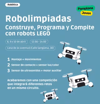 La Casa de la Juventud propone para el viernes 10 de abril unas 'Robolimpiadas', olimpiadas de robots. Los ingenios estarán hechos con piezas de LEGO y los habrán construido y programado quienes vayan del 8 al 10 de abril a las sesiones de robótica que van a tener lugar en la Casa.
