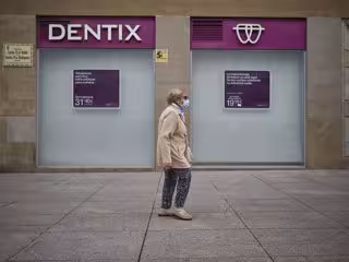 Una mujer paseas enfrente de una clínica de Dentix en Pamplona - Eduardo Sanz - Europa Press - Archivo