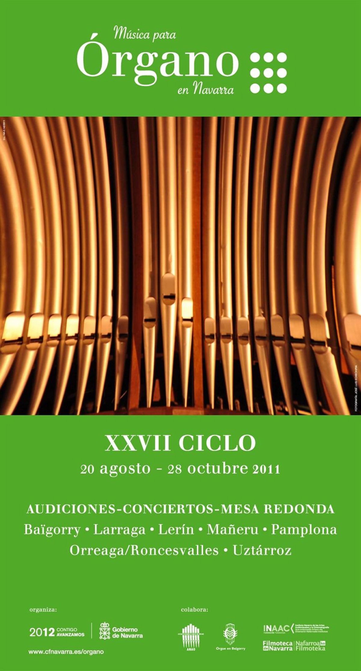 El Ciclo de Música de Órgano de Navarra, organizado por el Gobierno foral para la promoción y puesta en valor del patrimonio organístico de la Comunidad foral, propone esta semana tres conciertos con J. Charles Ablitzer J. Luis Echechipía y Raúl del Toro y Lixsania Fernández que actuarán los días 24, 26 y 27 de agosto, respectivamente.