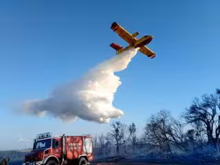 Un avión realiza una descarga de agua sobre los árboles afectados por un incendio - GOBIERNO DE NAVARRA
