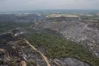 El incendio ha alcanzado un perímetro de 11 kilómetros, afectando a unas 900 hectáreas de tierras de labranza, la mitad de ellas todavía sin cosechar, así como de matorral, monte bajo, pino de repoblación y encinas.