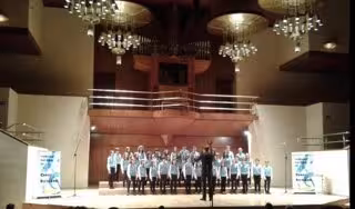 Las obras que cantaron son Hymne a la nuit (J.F. Rameau), Txoria txori (M. Laboa), Siyahamba (canción popular africana) y Esta tierra mía (Javier Busto).