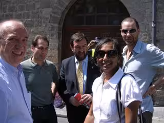 El consejero de Cultura y Turismo del Gobierno de Navarra, Juan Ramón Corpas, y el director gerente del Instituto Navarro de las Artes Audiovisuales y la Cinematografía (INAAC), Koldo Lasa, han visitado este viernes el rodaje de la película 'Zindagi Milegi Na Dobara' ('Sólo se vive una vez'), film de Bollywood que ha comenzado sus trabajos en Pamplona con el rodaje de escenas del encierro en la cuesta de Santo Domingo.