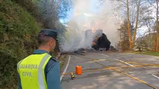 El incendio en un camión de paja cerca de Valcarlos este lunes ha obligado a cortar la carretera N-135 en el Alto de Ibañeta, según ha informado la Guardia Civil.