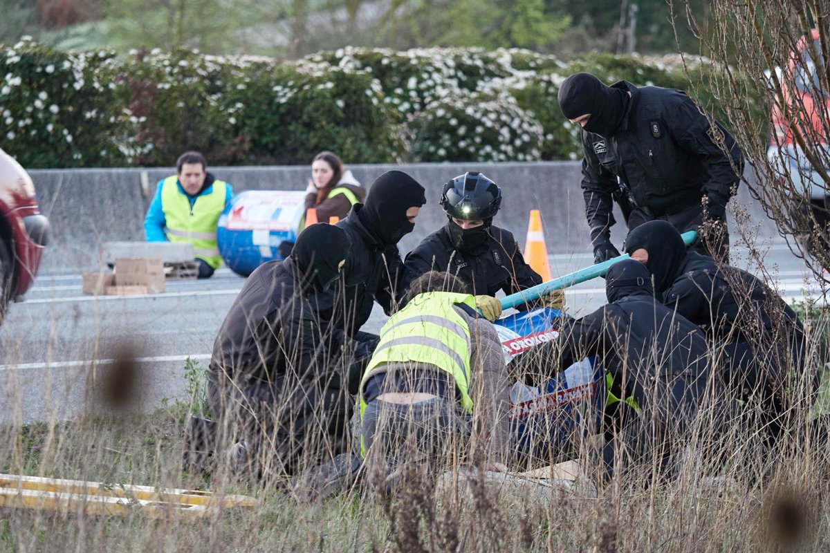 Según han informado fuentes de la Policía Foral a Europa Press, estas cuatro personas, que permanecían enganchadas por parejas a sendos barriles, han sido apartadas de la calzada. Aunque la vía ha quedado despejada, la retención se ha extendido hasta el kilómetro 0, a la altura de la intersección con la A-15, provocando un cuello de botella.