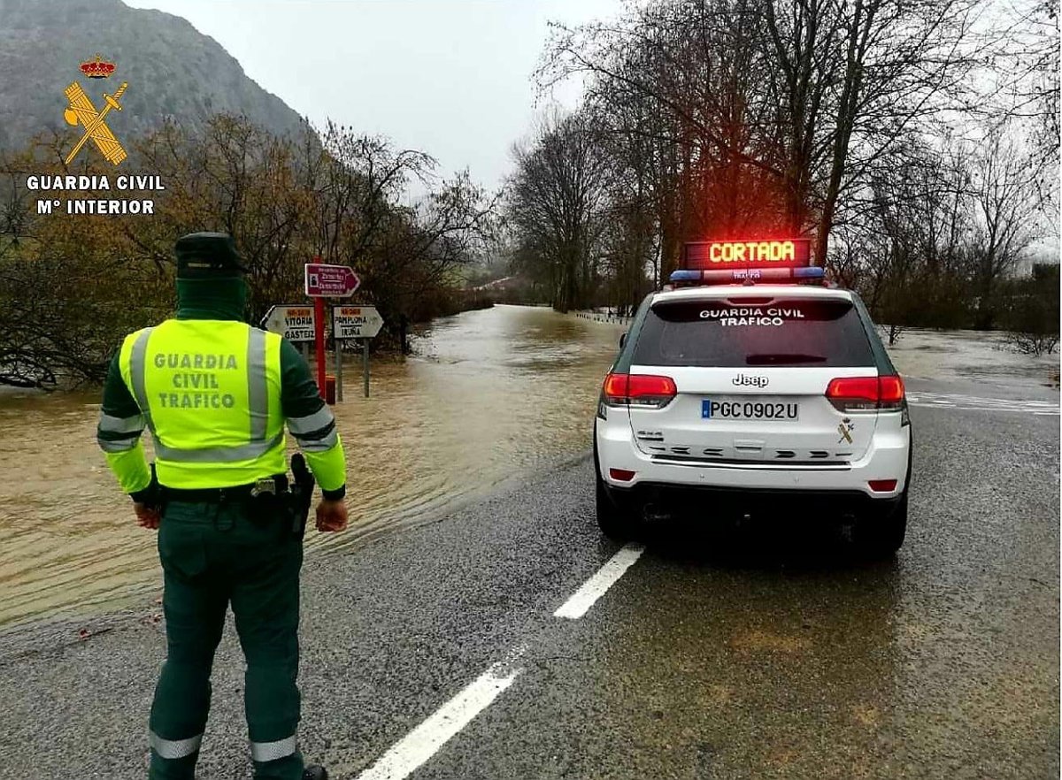 La carretera NA-2410 ha quedado cortada al tráfico, a partir del kilómetro 13, por el desbordamiento del río Arakil, ha informado la Guardia Civil.