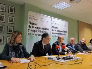 El proyecto ha sido presentado este lunes en rueda de prensa por el presidente de Cruz Roja Navarra, Pedro Herrero, la directora del Plan Empleo de esta organización, Esther Fernández, el delegado de Acción Contra el Hambre en Navarra, Iñaki San Miguel, el director de Banca de Instituciones de CaixaBank en Navarra, Óscar Insausti, y el director general de Fundación Caja Navarra, Javier Fernández.