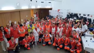 La presidenta María Chivite y la consejera Santos Induráin con el voluntariado de Cruz Roja en los encierros de San Fermín. - CRUZ ROJA