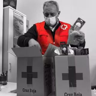 Un voluntario de Cruz Roja prepara un kit de eficiencia energética - CRUZ ROJA